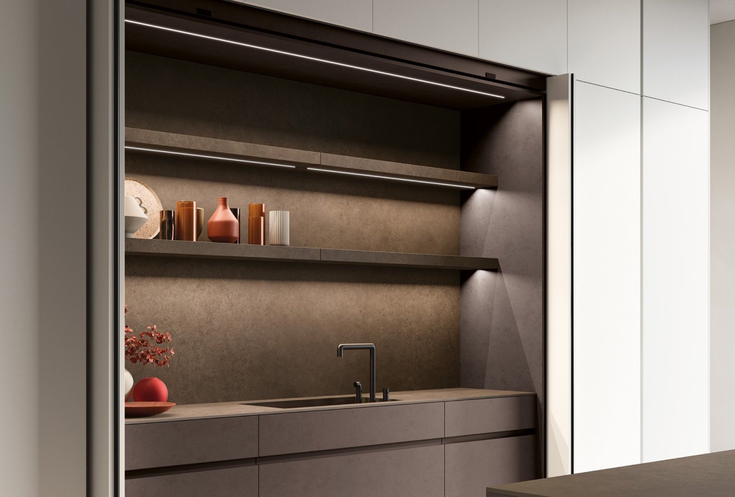 Kitchen systems and storage units become self-bearing architectural structures. Planning potential inspired not only by architecture and haute couture but most of all by art.